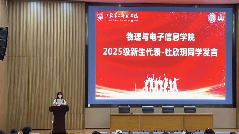 紧接着,新生代表杜欣玥发言,她分享了对大学生活的无限憧憬与坚定决心,更坚定表示将珍惜四年时光、勤学笃行,不负师长厚望。